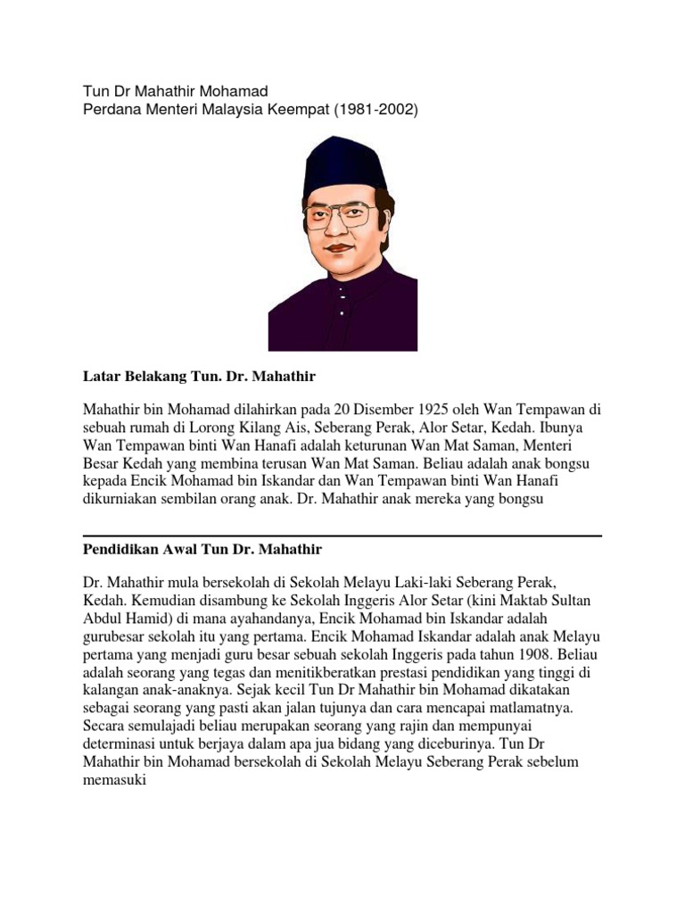 Biodata Tun Dr Mahathir Bin Mohamad Pdf